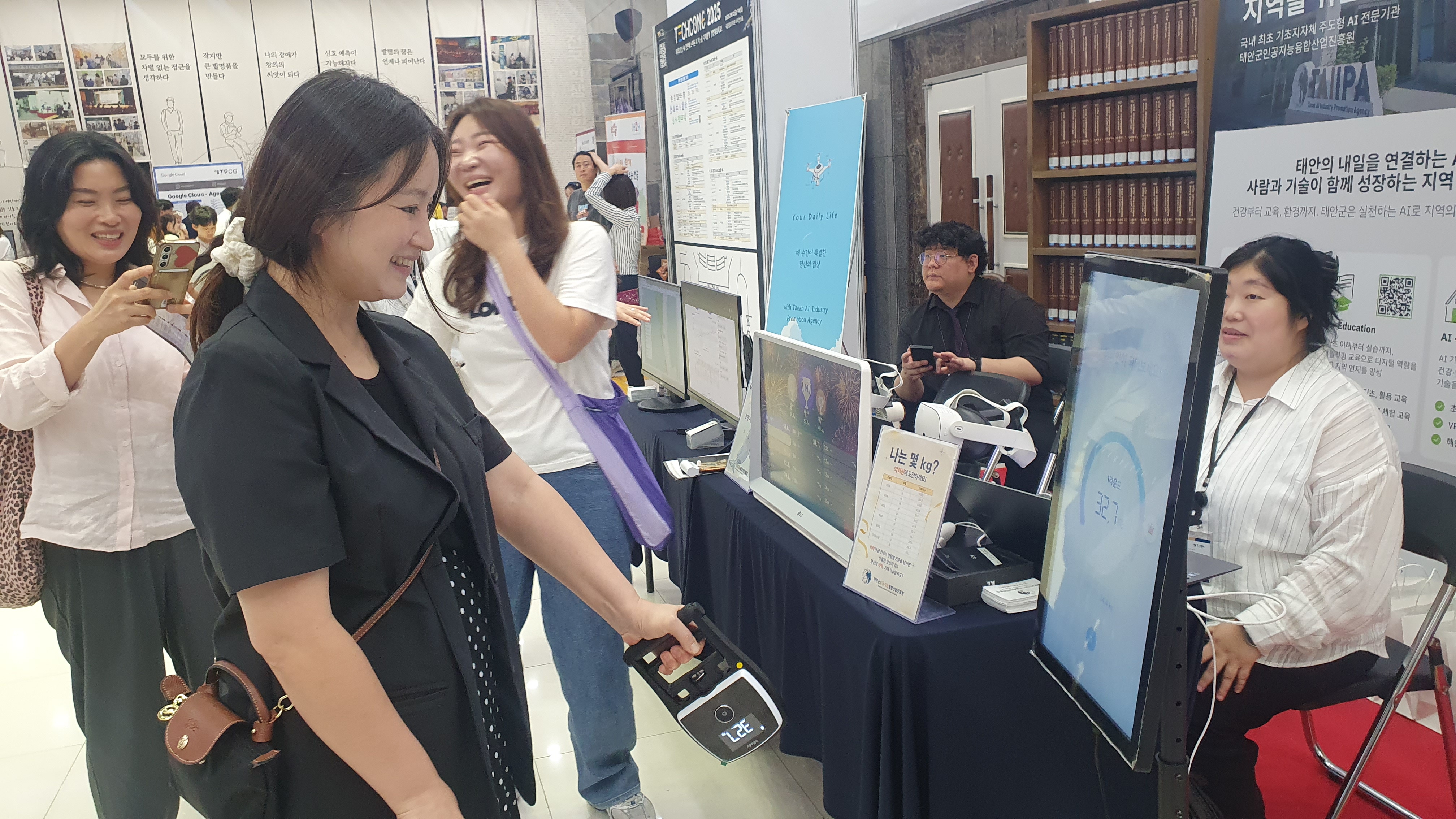 태안군인공지능융합산업진흥원은 2025년 9월 11일(목)부터 14일(일)까지 국립중앙과학관에서 열린 제2회 2025 테크콘E(TechConE)에 참여하여 AI 디지털 헬스케어 체험 부스를 성공적으로 운영하였다. 이번 부스는 “AI 기반 신체 및 인지 기능 평가 프로그램”을 주제로, 디지털 악력계, VR, 시각 AI 기반 보행분석 등 다양한 체험을 제공하였다. 이를 통해 참가자들은 자신의 건강 상태를 직접 확인하고 관리할 수 있었으며, 데이터 기반 헬스케어의 필요성과 인공지능 기술의 활용 가능성을 생활 속에서 체감하는 기회를 가졌다. 특히 청소년과 일반 시민들이 AI를 단순한 기술이 아닌 미래 진로 및 학문 분야와 연결하여 인식할 수 있도록 지원함으로써, 교육적 가치와 체험 효과를 동시에 달성하였다.